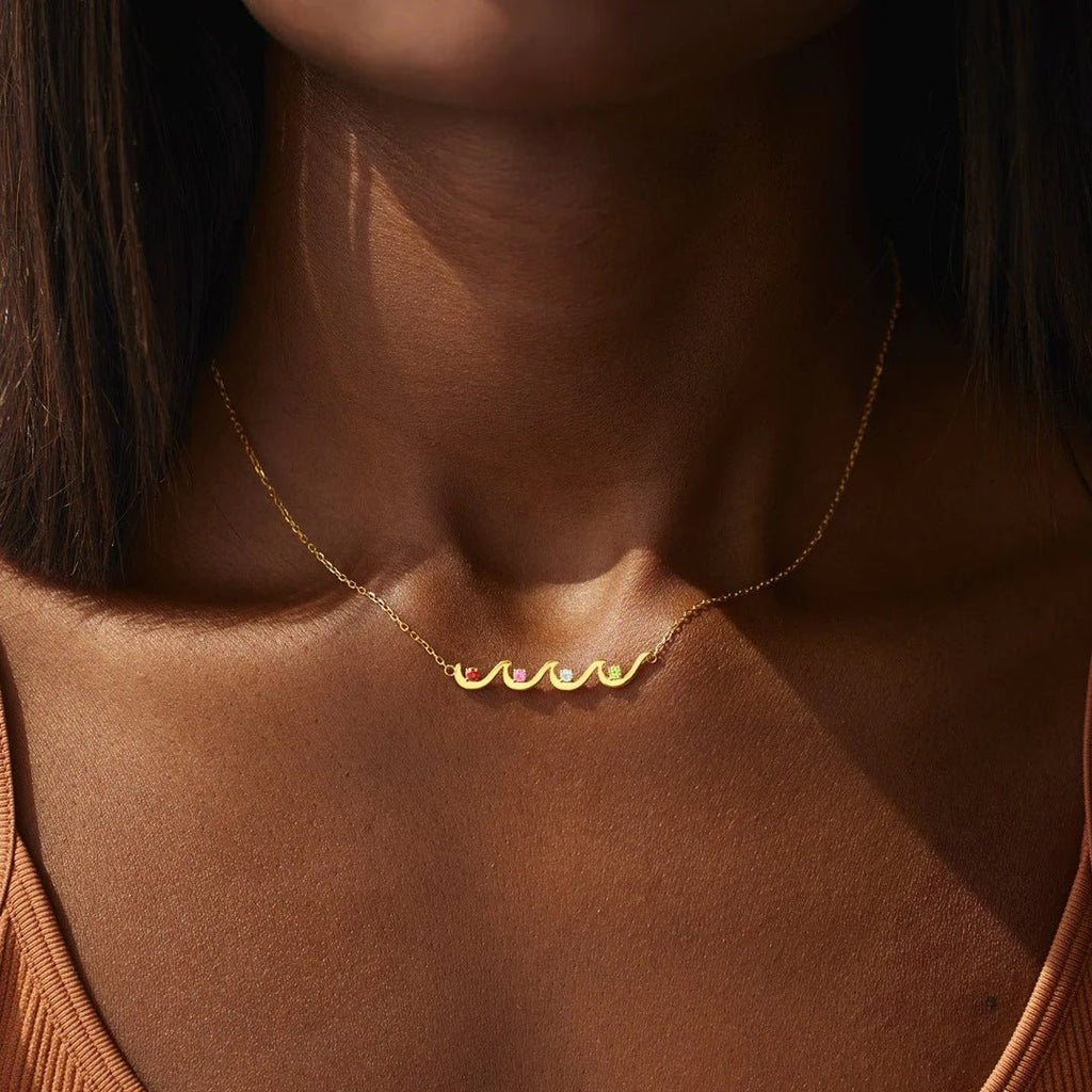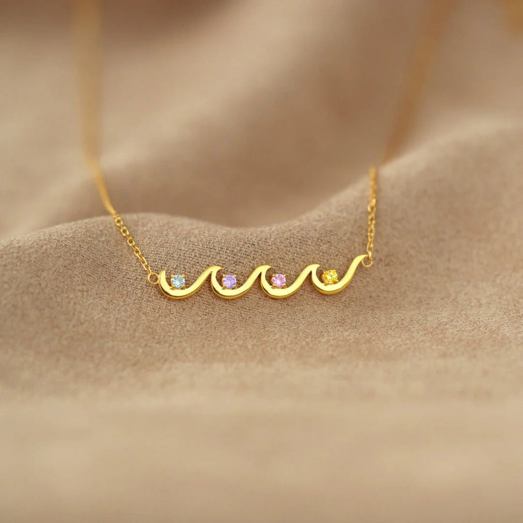 This meaningful wave pendant necklace symbolizes the enduring strength of maternal love through life's tides. Customize with 1-6 birthstones representing your children's birth months, creating a wearable family legacy in gleaming 925 sterling silver.